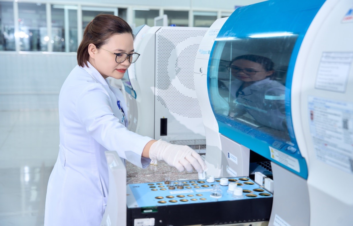 • Chuyên khoa Hóa sinh – Miễn dịch: Thực hiện các xét nghiệm sinh hóa máu (đường máu, mỡ máu, chức năng gan, chức năng thận, chức năng tuyến giáp, acid uric,…), các chỉ dấu ung thư (CEA, PSA, AFP, CA125, CA199, CA724, SCC, CIFRA21-1…), nội tiết, tim mạch,…